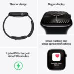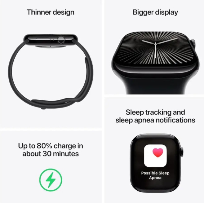 ساعت هوشمند اپل مدل سری 10 محصولی مناسب برای آقایان وبانوان است که هم در فعالیت های روزمره وهم در موقعیت های رسمی و ورزشی قابل استفاده است. جنس بدنه این ساعت از الومینیوم بوده و در ساخت ان از شیشه lon-X و سرامیک سافایر بهره گرفته شده است.ساعت هوشمند اپل مجهز به حسگرهای متعددی ازجمله قطب نما،سنجش اکسیژن خون،ژیروسکوپ،ارتفاع سنج و سنجش دمای بدن است.